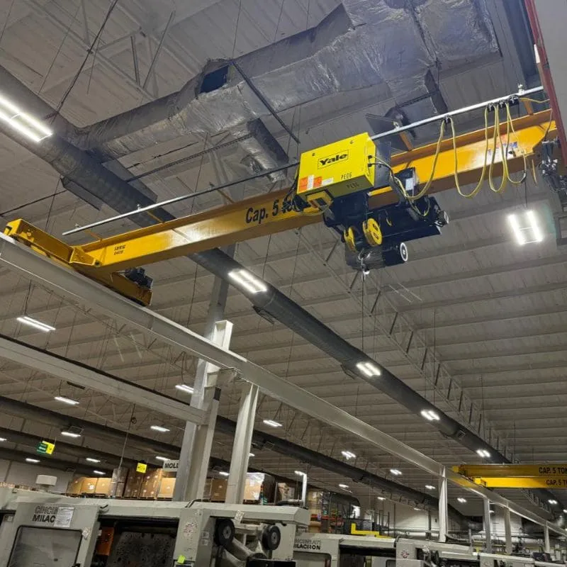 Equipo Industrial Que Eleva Y Transporta Cargas Pesadas, Moviéndose Sobre Vigas Paralelas (Puente) Mediante Un Carro Y Polipasto Para Desplazamientos Horizontales (Longitudinal Y Transversal) Y Verticales (Arriba/Abajo)